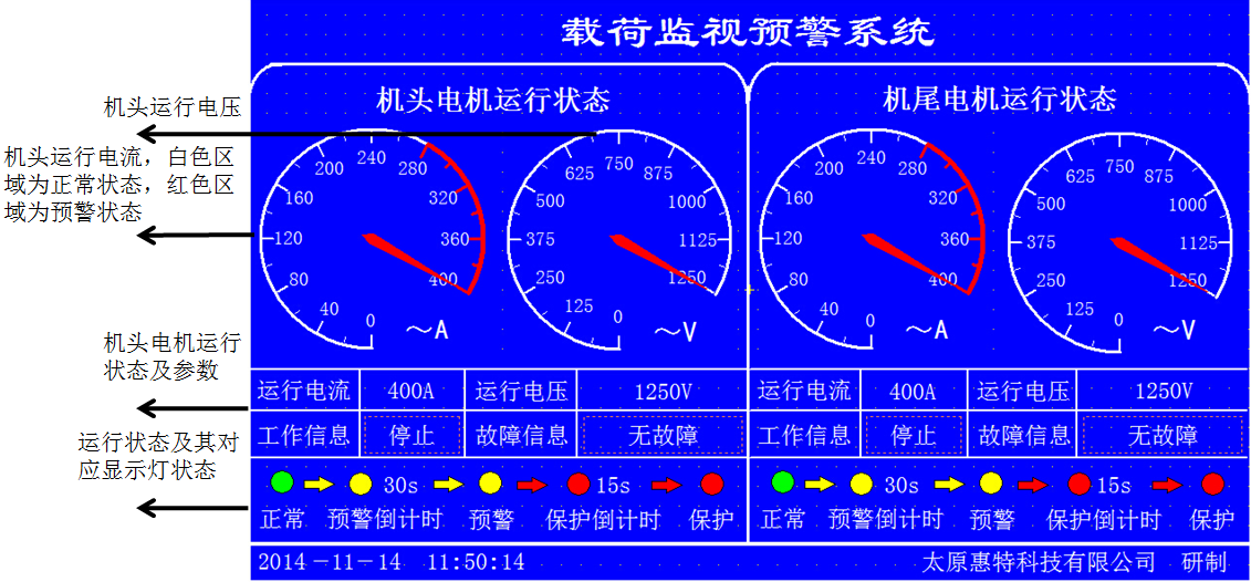 帶式輸送機(jī)、刮板運(yùn)輸機(jī)運(yùn)煤量不易被監(jiān)控,特別是重載停車后,極易造成難起動(dòng)。針對(duì)該問題,本公司研發(fā)了礦用載荷監(jiān)視預(yù)警系統(tǒng)。該套系統(tǒng)采集電機(jī)運(yùn)行電流,借以反映實(shí)時(shí)運(yùn)行載荷,對(duì)即將發(fā)生的載荷超限做出預(yù)警,以便控制上煤量,從而留有重載起動(dòng)富裕能力,緊急停車后,避免壓死運(yùn)輸設(shè)備。